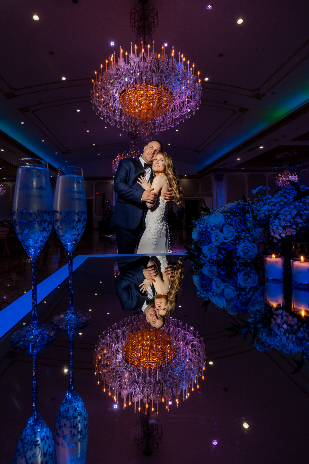 As you enter the ballroom, you will notice the polished stone floor reflecting the great chandeliers above. With full length windows, uplighting, and stunning wedding decor at every turn, you will be blown away with the amenities of this venue.